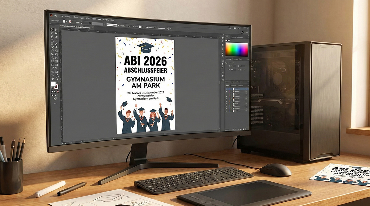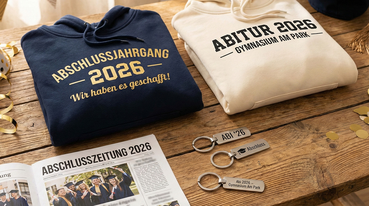 Vergiss Billig-Hoodies und pixelige Logos. Von der professionell gesetzten Abschlusszeitung bis hin zur präzisen Lasergravur auf euren Erinnerungsstücken – wir setzen euren Meilenstein technisch perfekt um. Sichert euch jetzt ein unverbindliches Angebot und nutzt unser Know-how als Mediengestalter für ein stimmiges Branding eurer Abschlussklasse.